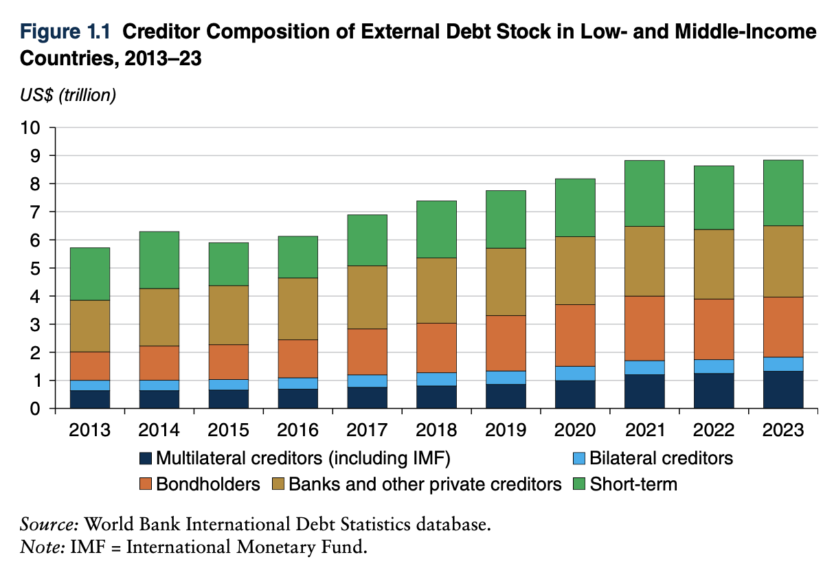 Our example will be a chart from a World Bank report on Low and Middle-Income countries’ External Debt Composition. Don’t get scared by the topic. It’s irrelevant. The Data Storytelling tips are.