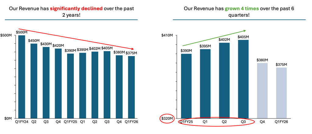 A marketing team presents last month’s campaign results. They use a bar chart with a narrow y-axis. They choose selective periods to show some decent growth. This makes it appear to be a huge win. The team doesn’t mention that customer satisfaction dropped during the same period. The result? Leadership is misled, and future decisions are based on incomplete information. The left chart provides the full context, while the right chart displays only selected data with truncated axes.