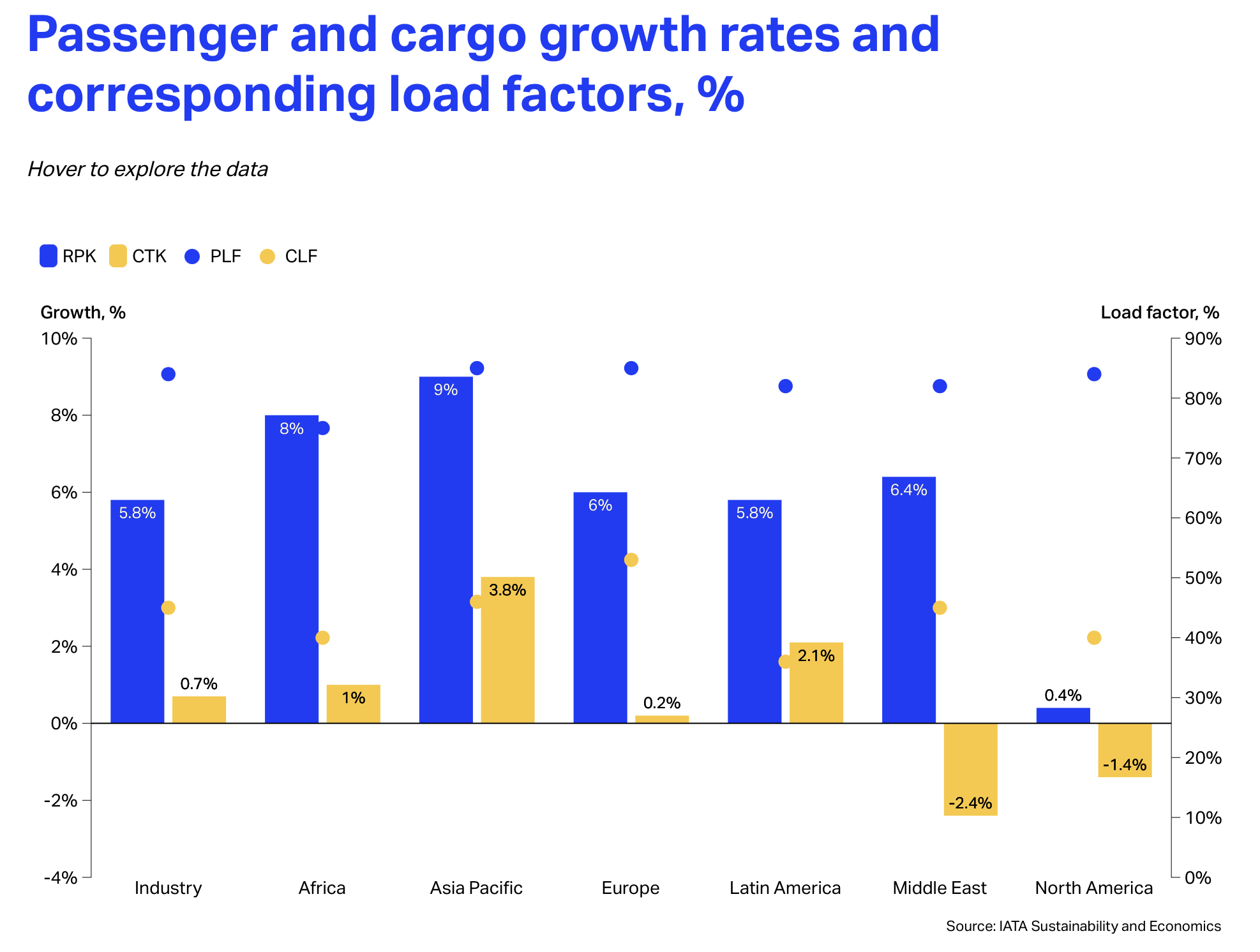 Our example will be a chart from IATA blog. It features a topic on Air Travel Projections for 2025, covering both passenger and cargo traffic. A corresponding chart is provided below to accompany the article.