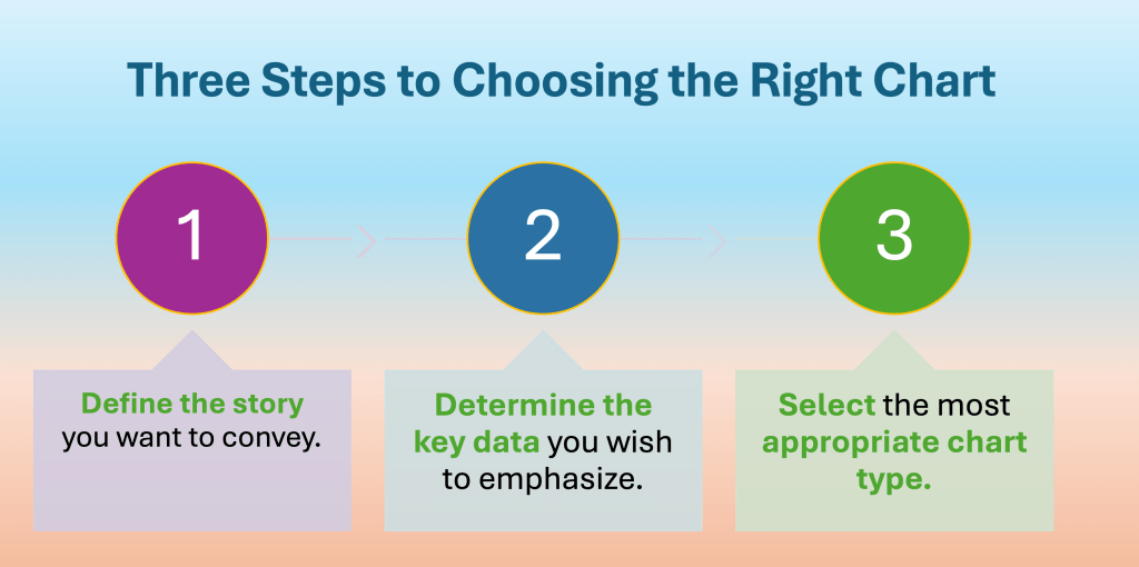 Step 1 – Defining the story you want to convey is crucial before selecting any chart. A well-defined narrative is the foundation for your data visualization, guiding every decision you make. When you articulate what message you aim to communicate, you gain clarity on the types of data to gather. You also understand the context needed and the audience’s perspective.